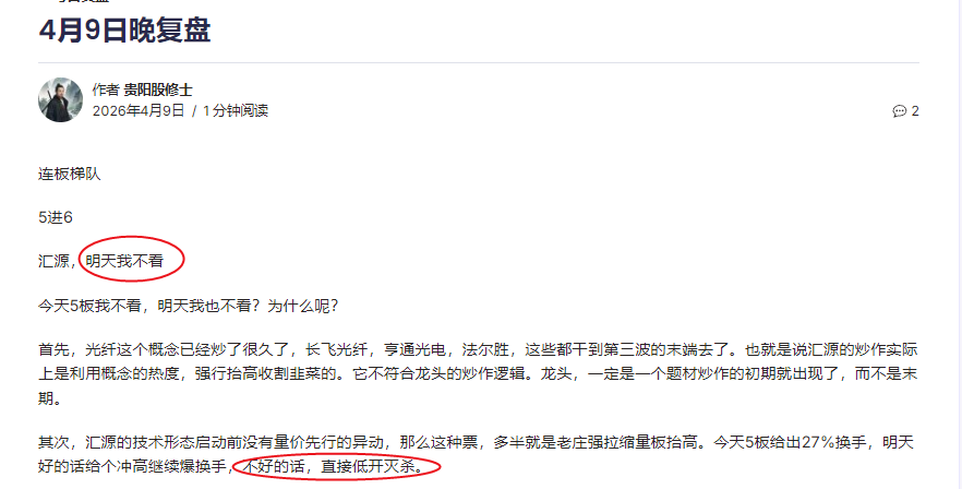 4月8日的复盘,和4月9日的复盘,自己看吧,可别说我马后炮。兄弟,你能看懂了这两天复盘里,对汇源的判断吗?。