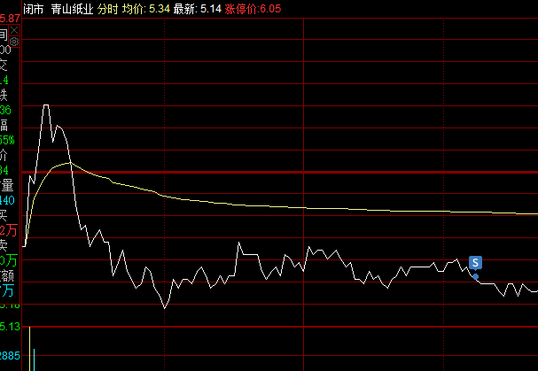青山纸业 也是因为数量稀少,没一直盯盘它,冲高,回落,最后只能割肉。