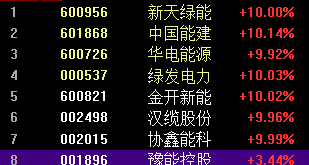 协鑫能科,汉缆股份,金开新能,还有没有涨停的总龙头豫能控股。
